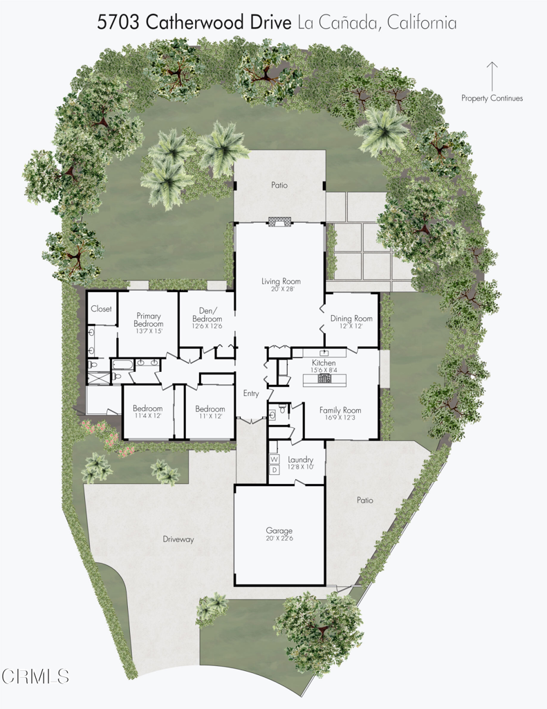 Perched at the end of a quiet cul-de-sac in La Canada Flintridge, 5703 Catherwood is a classic mid-century home defined by privacy, architectural integrity, and extraordinary 180-degree views. The vistas stretch across mountains and open sky, and on clear days extend all the way to the Pacific Ocean--an ever-changing panorama that anchors the home and elevates daily living. Walls of glass and nine sliding doors create exceptional indoor-outdoor ease, opening to dedicated patios, and framing the views from nearly every room. A generous living room takes full advantage of the outlook, offering a dramatic yet serene space for gathering and entertaining, while a separate dining room provides a more formal setting, also oriented toward the scenery. The kitchen flows into a family room, both connecting directly to their own patios--ideal for casual living, morning coffee, and effortless entertaining.The layout includes three bedrooms plus a den that could easily function as a fourth bedroom, office, or studio. Set on an expansive lot with generous flat outdoor space, the property feels secluded and peaceful, with multiple areas to enjoy the landscape and views. Rich with numerous original mid-century details and strong architectural bones, this is a rare opportunity to thoughtfully bring a special home up to date while preserving its timeless design. With unmatched views, privacy, and potential, 5703 Catherwood is truly something special.