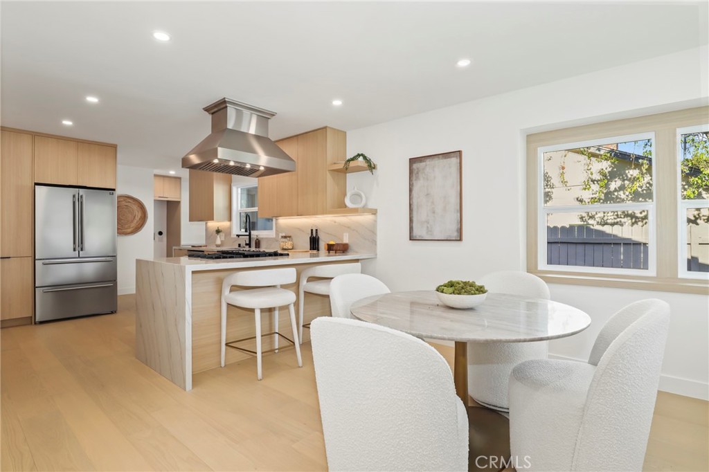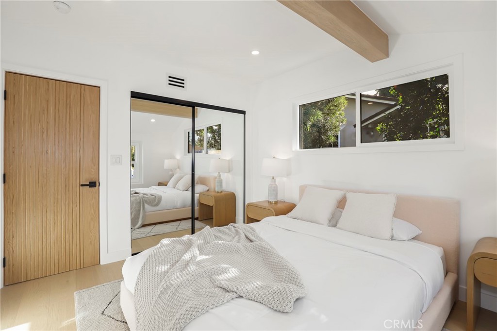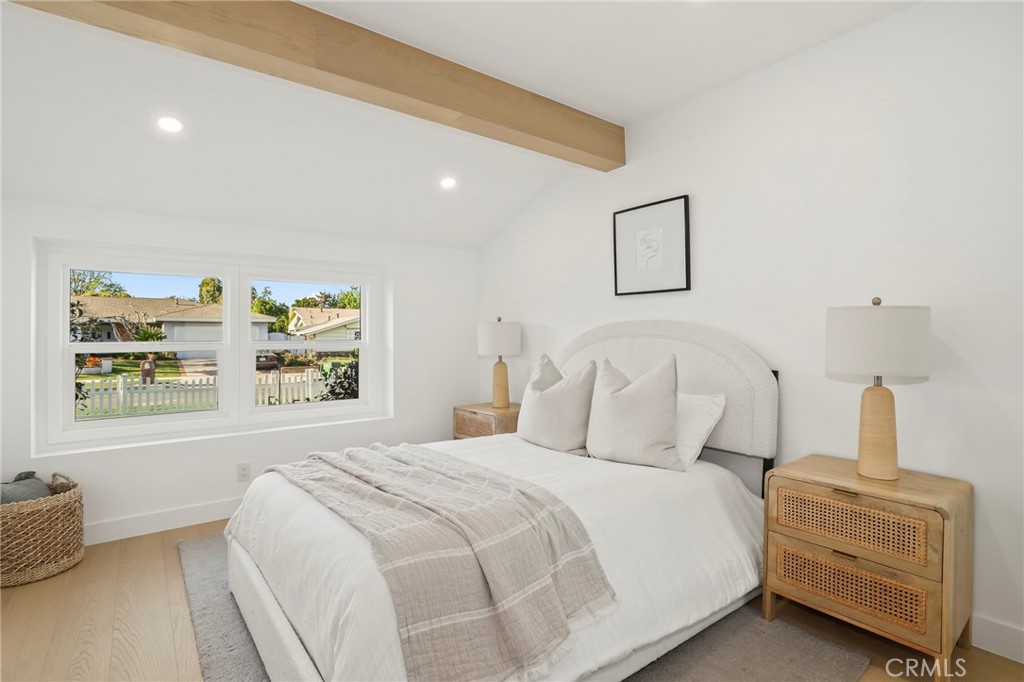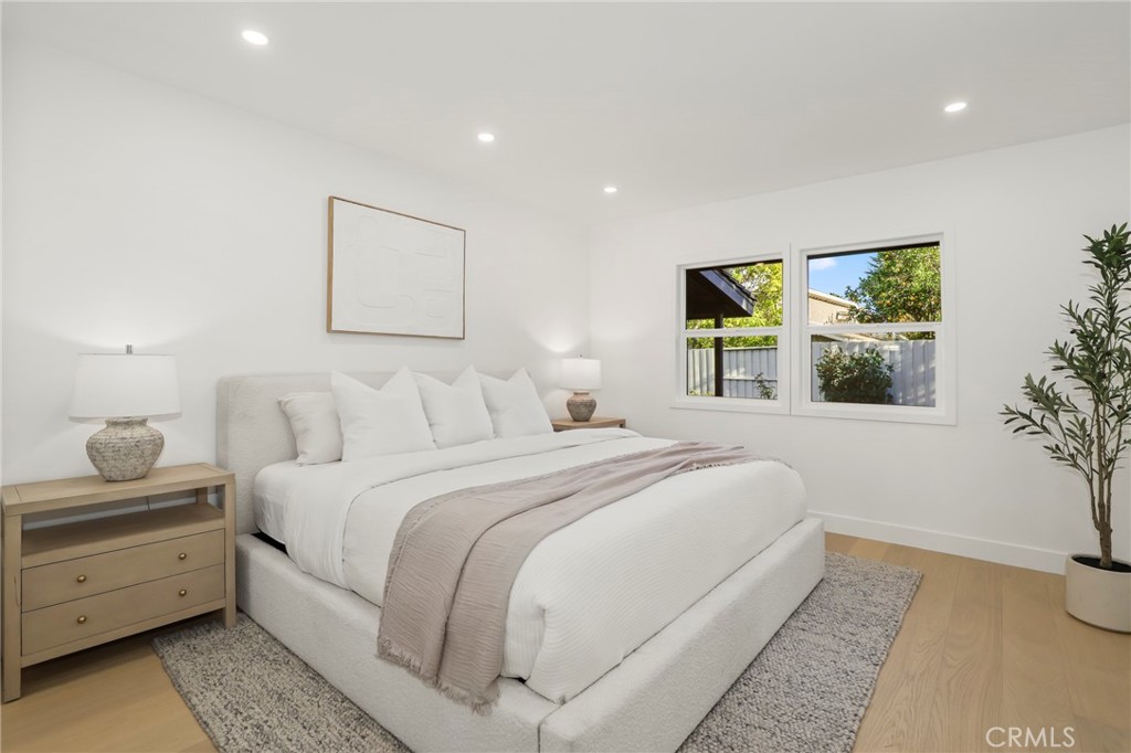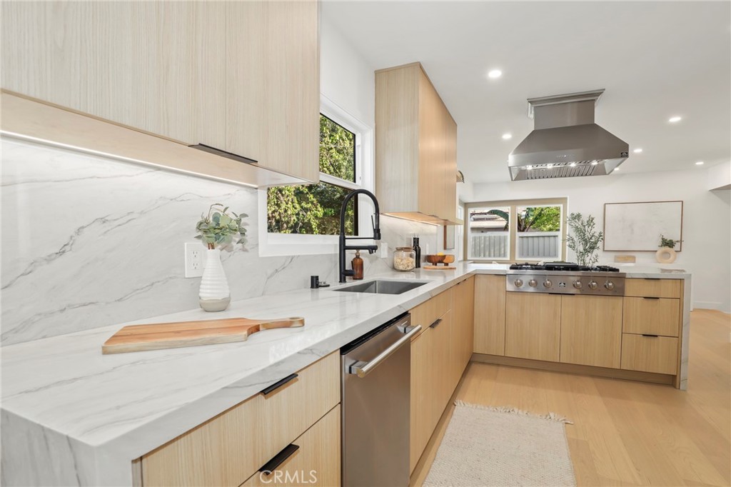 Fully reimagined from A to Z by a French designer, this spectacular one-of-a-kind modern residence is a rare architectural gem. Every detail has been thoughtfully curated with premium materials and exceptional craftsmanship, creating a truly unique, move-in-ready home that will not last. This full remodel features a brand-new electrical panel with fully updated electrical throughout, all-new plumbing, new attic insulation, and brand-new dual-pane windows across the entire home. Wide plank white oak engineered hardwood floors flow seamlessly throughout, complemented by new white oak interior doors and all-new recessed LED lighting. The designer kitchen is a true showpiece, featuring all new Forno appliances, quartz countertops throughout the home, and a spectacular waterfall island with integrated dining area—perfect for entertaining. Spa-inspired bathrooms showcase large-format Italian tile, textured feature walls, travertine and Taj Mahal-inspired finishes, solid white oak vanities, LED anti-fog mirrors, illuminated niches, and under-vanity lighting for a refined modern ambiance. The living space is anchored by a stunning lime-wash fireplace with custom shelving, blending warmth and contemporary elegance. Exterior upgrades include new siding, all-new landscaping, new garage slab, new concrete pathway, new garage door with motor, and custom slatted aluminum panels. The garage also features a new 240V EV charging outlet. Smart features include a Ring camera system. Custom closets with new sliding doors have been thoughtfully designed in every bedroom. Spectacular. Unique. Architectural. A true modern masterpiece and rare opportunity to own a fully turnkey designer home built with uncompromising attention to detail.
