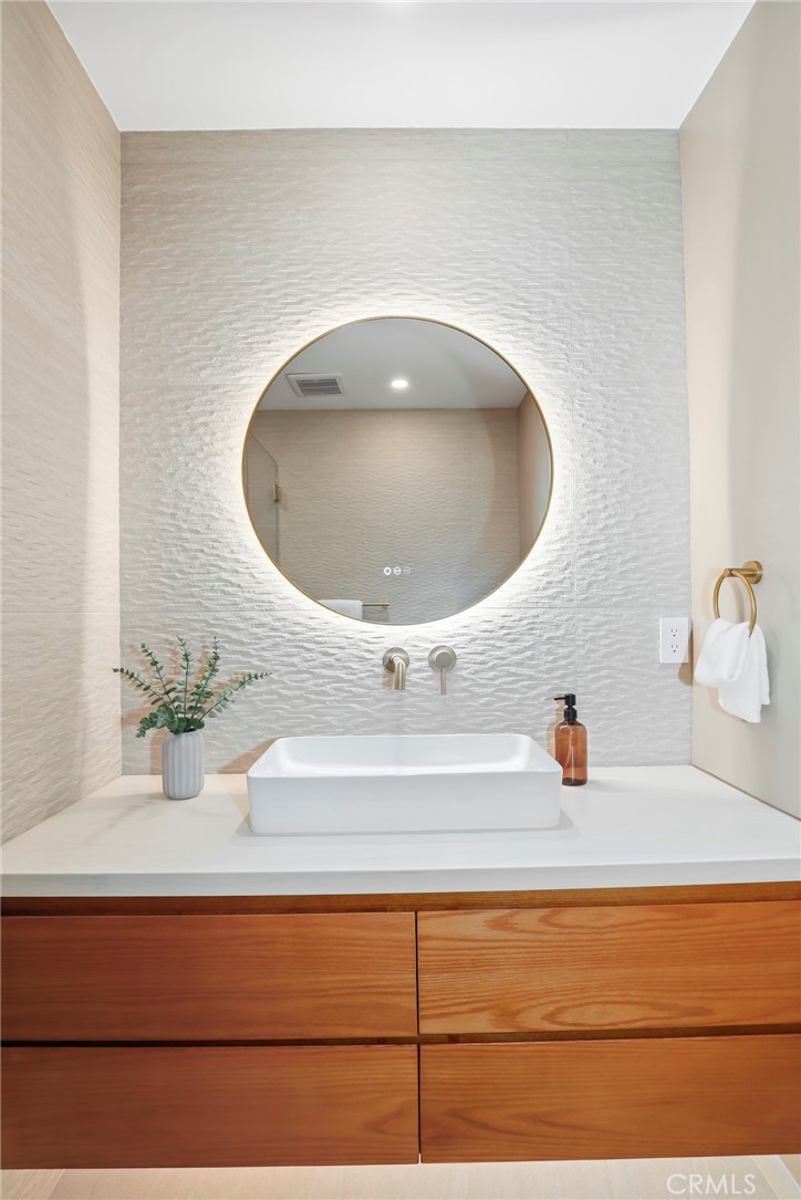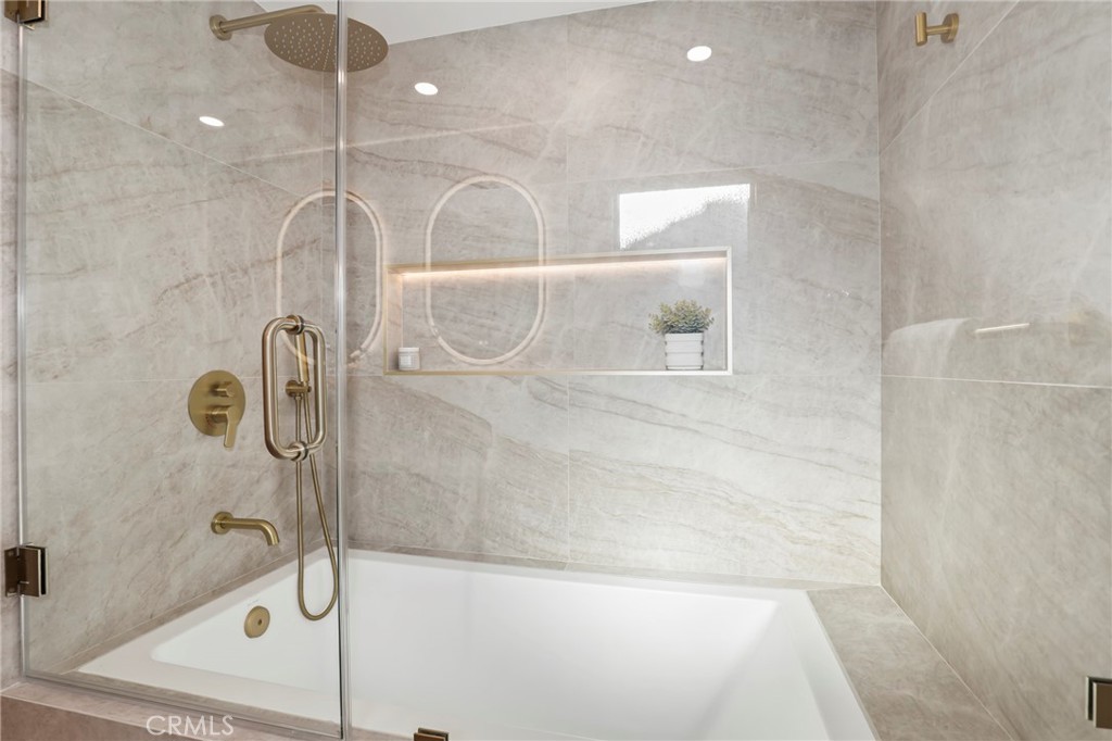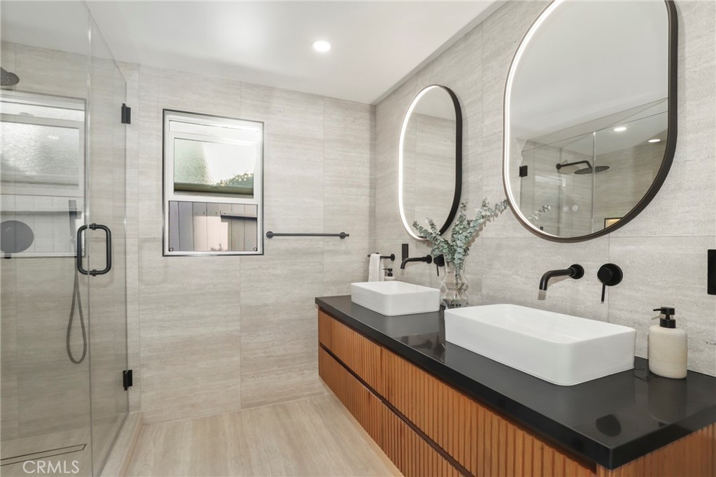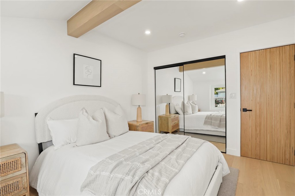 Fully reimagined from A to Z by a French designer, this spectacular one-of-a-kind modern residence is a rare architectural gem. Every detail has been thoughtfully curated with premium materials and exceptional craftsmanship, creating a truly unique, move-in-ready home that will not last. This full remodel features a brand-new electrical panel with fully updated electrical throughout, all-new plumbing, new attic insulation, and brand-new dual-pane windows across the entire home. Wide plank white oak engineered hardwood floors flow seamlessly throughout, complemented by new white oak interior doors and all-new recessed LED lighting. The designer kitchen is a true showpiece, featuring all new Forno appliances, quartz countertops throughout the home, and a spectacular waterfall island with integrated dining area—perfect for entertaining. Spa-inspired bathrooms showcase large-format Italian tile, textured feature walls, travertine and Taj Mahal-inspired finishes, solid white oak vanities, LED anti-fog mirrors, illuminated niches, and under-vanity lighting for a refined modern ambiance. The living space is anchored by a stunning lime-wash fireplace with custom shelving, blending warmth and contemporary elegance. Exterior upgrades include new siding, all-new landscaping, new garage slab, new concrete pathway, new garage door with motor, and custom slatted aluminum panels. The garage also features a new 240V EV charging outlet. Smart features include a Ring camera system. Custom closets with new sliding doors have been thoughtfully designed in every bedroom. Spectacular. Unique. Architectural. A true modern masterpiece and rare opportunity to own a fully turnkey designer home built with uncompromising attention to detail.