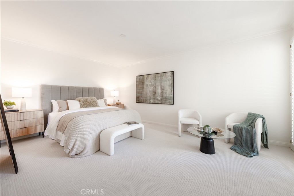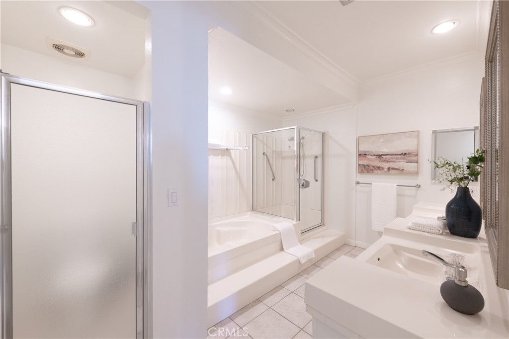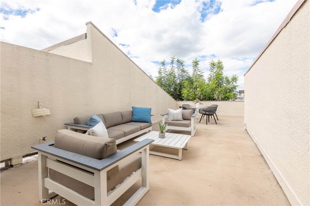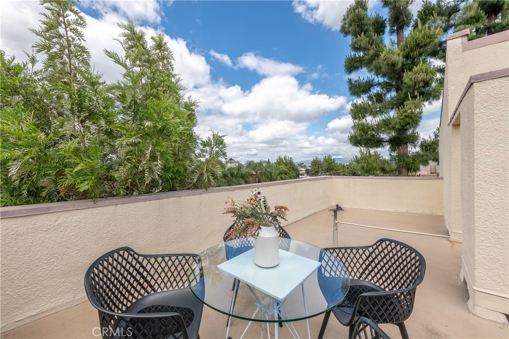 Top-floor corner condo offering an exceptional blend of light, privacy, and sophistication. This beautiful residence features an open, airy floor plan with high ceilings, walls of glass, and a seamless indoor-outdoor flow to two private balconies. The thoughtfully designed layout includes generously sized bedrooms, highlighted by a serene primary suite with ample closet space, vanity area, and a private en-suite bath with a separate soaking tub, walk-in shower, dual sinks, and a private water closet. The living and dining areas showcase high ceilings, expansive windows, a wet bar with a refrigerator, and sliding doors that open to a balcony, perfect for entertaining. A formal dining room and eat-in kitchen enhance the home’s elegant yet functional design. Upstairs, a spacious loft awaits, ideal for a home office, media room, or lounge offering direct access to a large private rooftop deck, perfect for relaxing under the stars. Additional highlights include in-unit laundry, newly installed hardwood floors and carpet, custom plantation shutters, and access to resort-style amenities including a pool, spa, gym, recreation room, and lush courtyard walkways. Located just moments from the 101 freeway and Ventura Blvd, this home provides easy access to shopping, fine dining, award-winning schools, parks, and more. Don't miss this opportunity to experience luxury living at its finest in Encino Spa South.