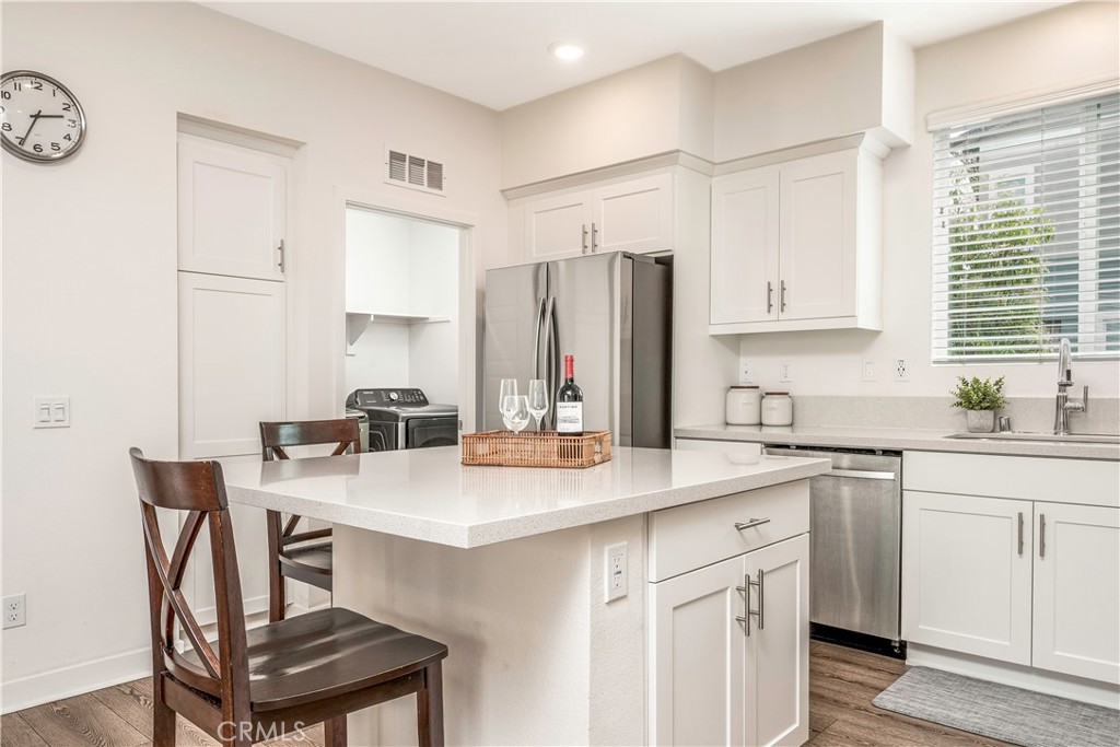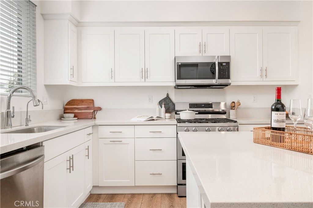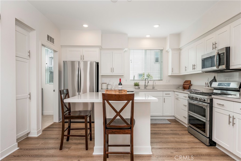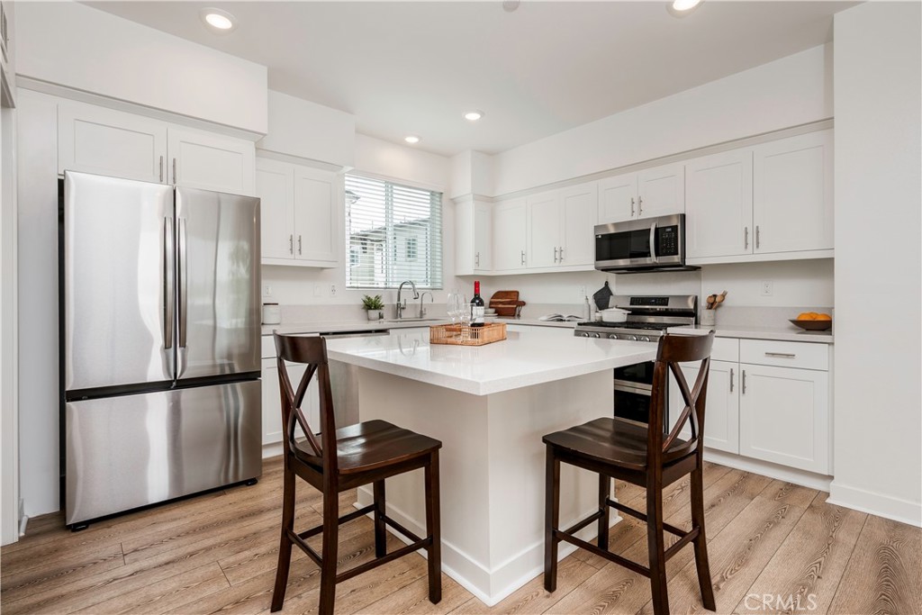 Stainless steel appliances, including a gas range, built-in microwave, Refrigerator, and Dishwasher pair seamlessly with contemporary finishes, while recessed lighting and abundant natural light create a clean, inviting ambiance throughout. The third level features dual primary suites, each complete with walk-in closets and private en-suite bathrooms. Smart home technology elevates your everyday living with integrated systems via Brilliant Home Control for seamless touch and voice operation of lighting, climate, security, music, and more, along with a Ring video doorbell, smart thermostat, and keyless entry. PAID OFF SOLAR PANELS enhance energy efficiency while meeting California’s sustainability standards. BONUS upgrades include a PAID OFF $8,000 Value whole house reverse osmosis, Tankless Water Heater, and 2-car garage! This private, gated community is thoughtfully designed with resort-style amenities, including a sparkling pool and spa, children’s play area, BBQ stations, inviting picnic spaces, and ample Guest Parking.