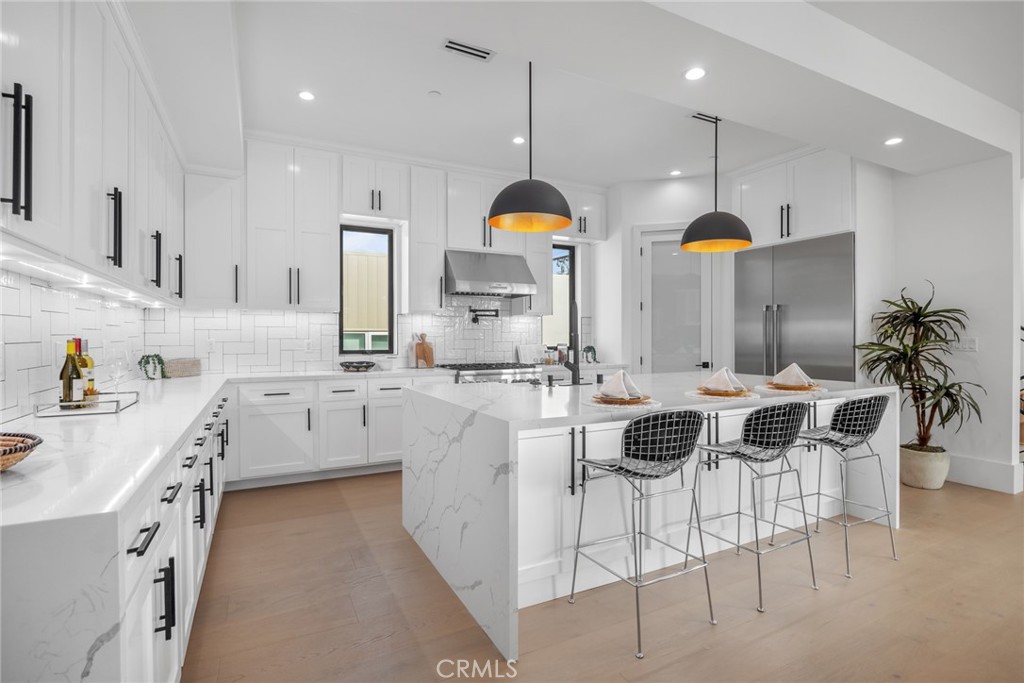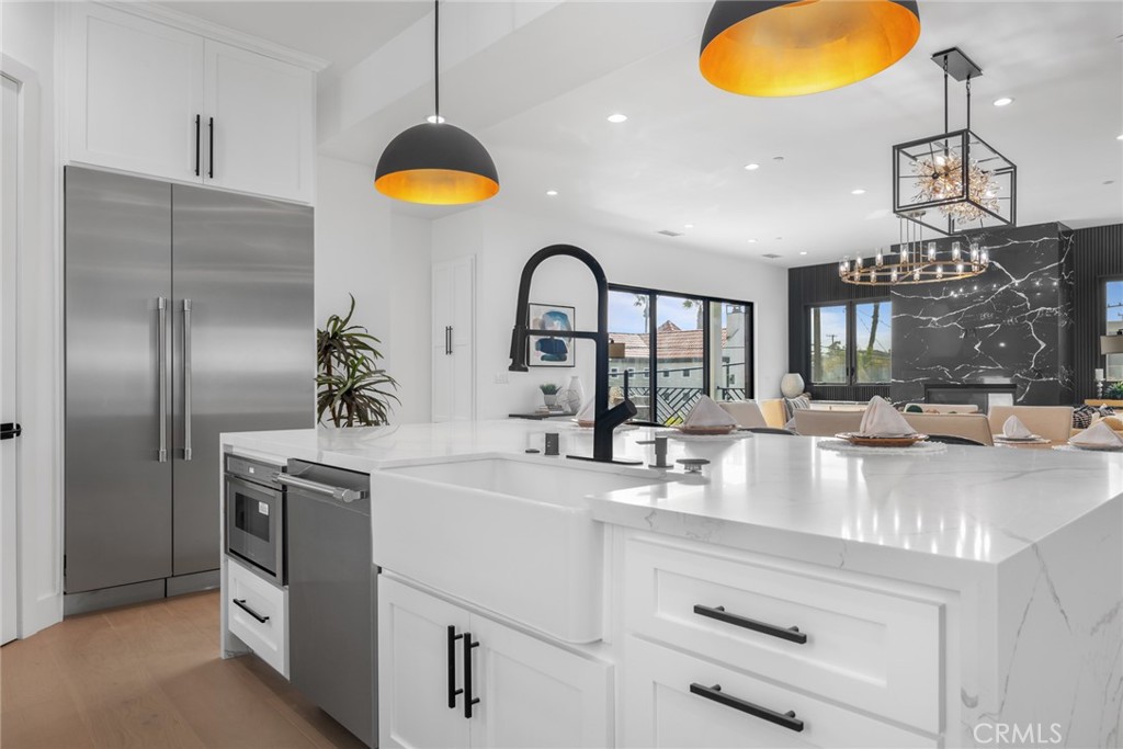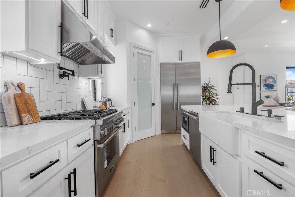 Experience the pinnacle of coastal living in this exquisite brand-new townhome that redefines luxury at every turn. Perfectly positioned just one block from the beach and within strolling distance of the vibrant Riviera Village, this coastal masterpiece offers a lifestyle of opulence, convenience, and natural beauty. As you step inside, you'll be captivated by the open floor plan, creating a sense of limitless space where the living areas seamlessly blend together. The elegant French oak floors underfoot add a touch of timeless sophistication, complementing the vaulted ceilings that create an atmosphere of grandeur and spaciousness. The heart of this townhome is the kitchen, a culinary haven adorned with the finest Thermador appliances. With top-tier finishes throughout, this kitchen is a chef's dream, setting the stage for culinary adventures while providing an impeccable aesthetic.