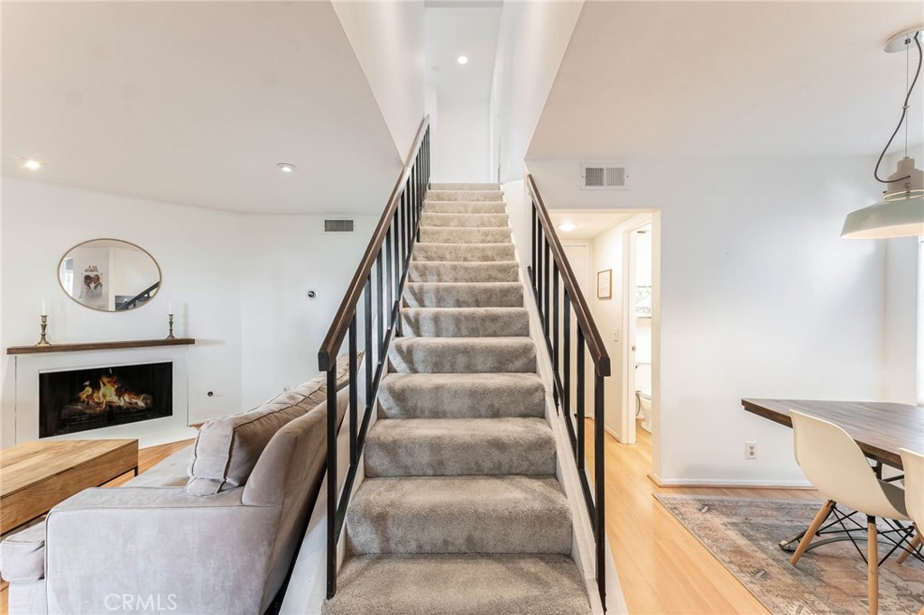 Welcome to this stunning and updated 2 bedroom 2.5 bathroom townhouse, offering an ideal blend of modern comfort and resort-style amenities. Upon entering, you'll be immediately captivated by the inviting living room adorned with laminate flooring. The centerpiece of the room is a cozy fireplace, perfect for gathering around on chilly evenings. The well-appointed kitchen and adjacent dining area provide ample space for culinary endeavors and dining with friends and family. Newer carpeting graces the second floor and stairs, creating a plush and comfortable environment. The primary suite offers a tranquil retreat, featuring a walk-in closet and an en-suite bathroom for ultimate convenience and privacy. The remodeled bathrooms showcase elegant fixtures and modern design. Secondary bedroom is spacious with a walk-in closet. Practicality and convenience are seamlessly integrated with in-unit laundry and a direct access garage, making daily tasks a breeze and providing excellent storage solutions. Residents of this townhouse will enjoy access to a variety of exceptional amenities - pool and spa for relaxation, workout gym, sauna, half-court basketball court, and a club house for social gatherings. Don't miss the opportunity to own a home that combines contemporary design with an array of desirable amenities. This townhome is just minutes away from the area's top restaurants, shops, entertainment options, and major freeways. Come see this gem as this home is Priced to Sell! The Key to Your New Home is waiting for YOU!