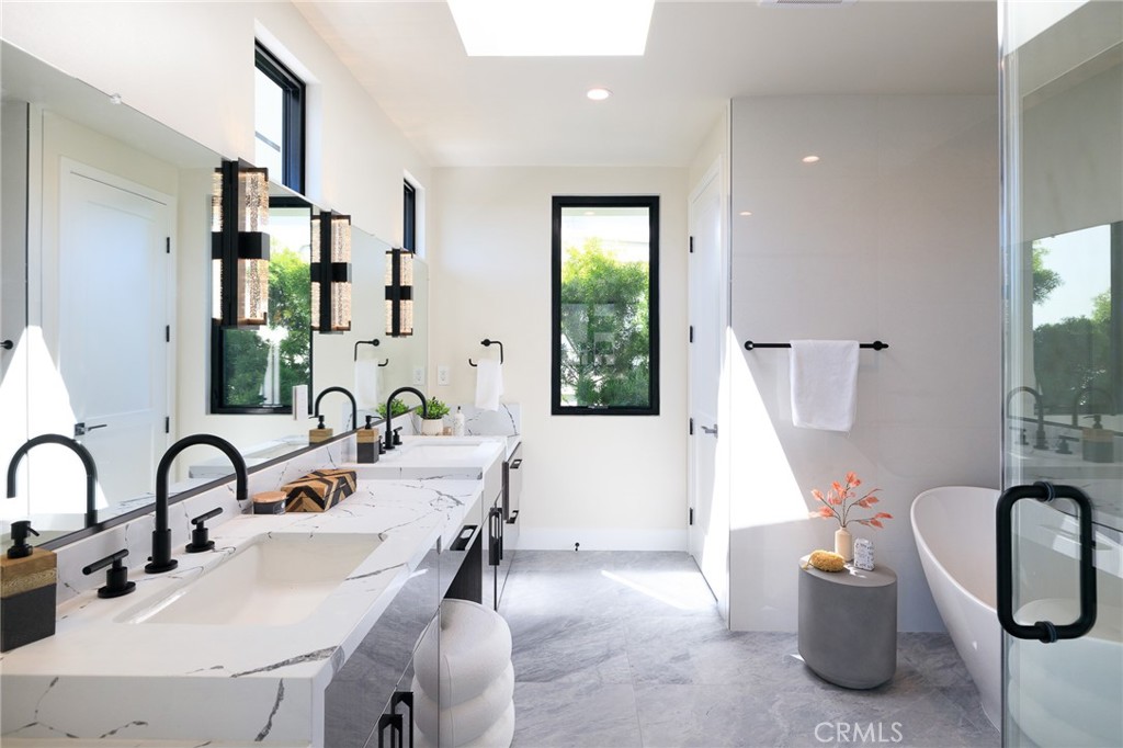 Upstairs, the Primary Bedroom has an exquisite soaking tub, dual sink vanity and a frameless shower. Also upstairs; 3 bedrooms and/or office, each with their own ensuite baths. Laundry conveniently located upstairs also.