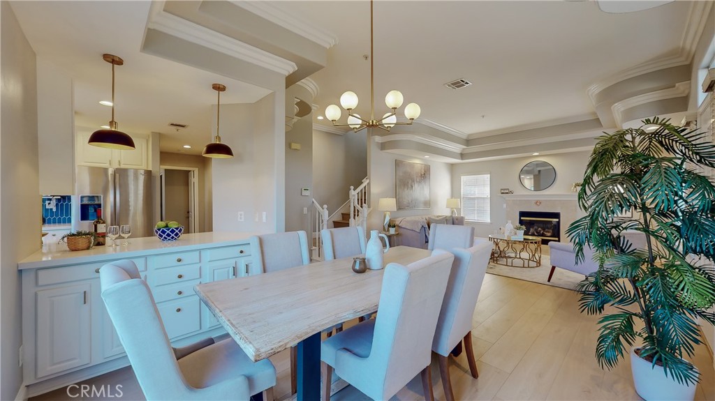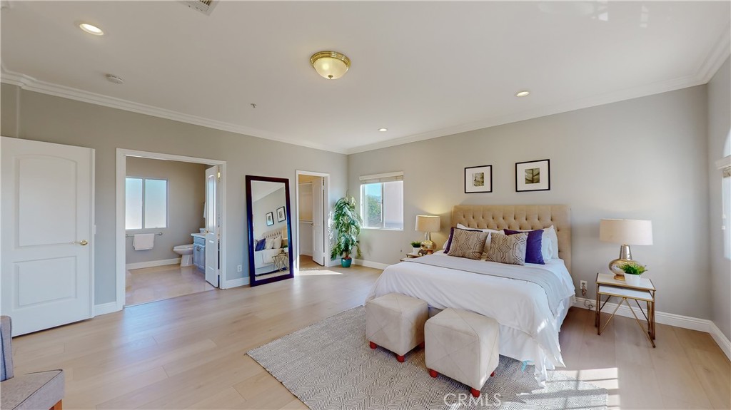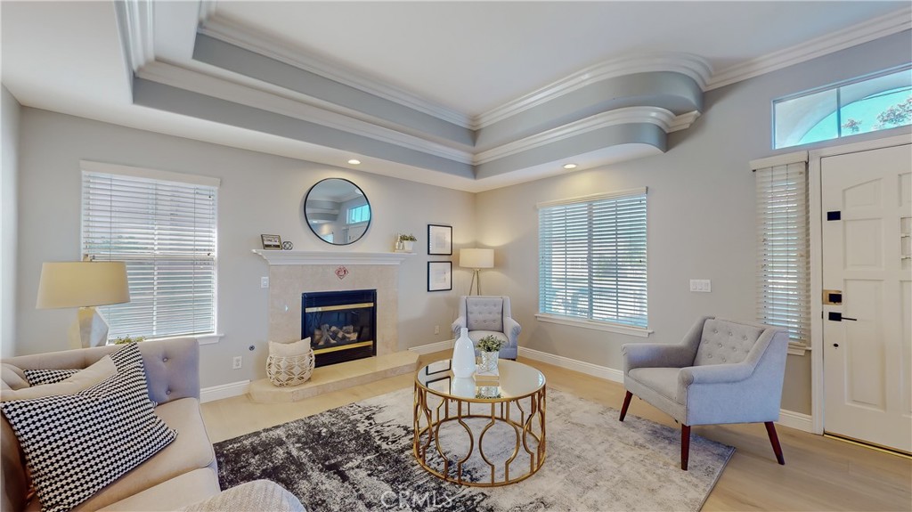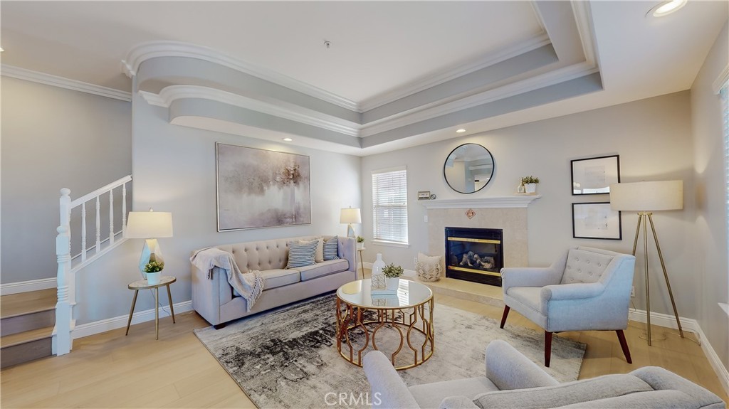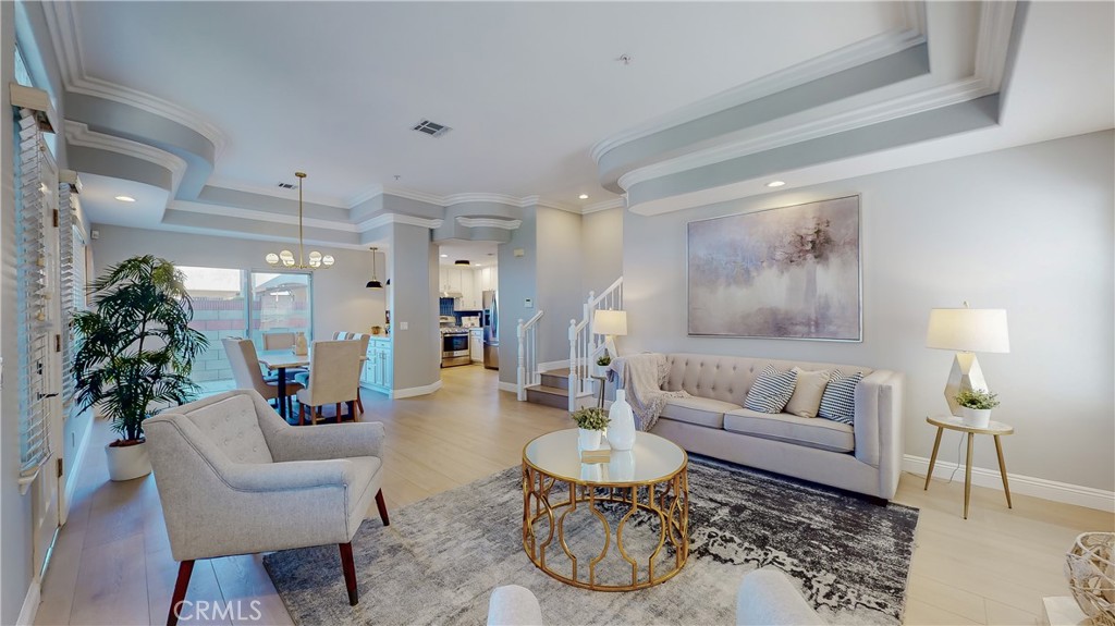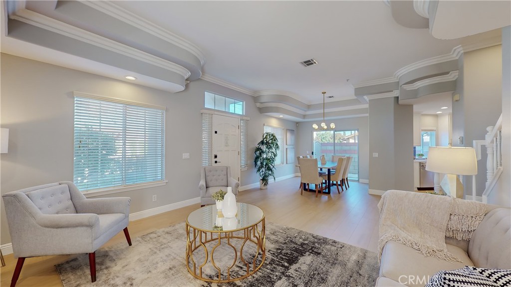 FRONT UNIT! NO SHARED WALLS! Here’s the opportunity you’ve been waiting for. Available for the first time in 20 years, this stylishly updated home boasts soaring tray ceilings along with 4 spacious bedrooms & baths. Step into a world of elegance and modern living as you notice the new flooring, chic lighting fixtures, and elegant gold accents throughout. The open and well-thought-out floor plan features a generous living room with a lovely travertine fireplace and is just the right size for large gatherings where cherished memories are made. Stunning designer backsplash magnificently pops against the bright white cabinets and quartz countertops in the Chef’s kitchen that includes stainless steel appliances. Adjacent to the kitchen you’ll find a completely remodeled bathroom and a bedroom that could serve as a study where creativity meets brilliance. The large 2 car garage provides plenty of storage and has direct access into the home. A third dedicated parking space is adjacent to the home for your convenience. Up a flight of stairs, you’ll find not 1, not 2, but 3 suites each with its own updated bathroom. The enormous primary suite is fit for royalty and has a vast walk-in closet ready to be customized for the fashionista in you. If outdoor space is what you’re after, look no further. One could search for years and not find a home of this quality, functionality, and with this much yard space in this price point. Conveniently located to freeways and within walking distance to dining, shopping, and highly acclaimed Mark Keppel High School. Don’t blink, or it’ll be gone!