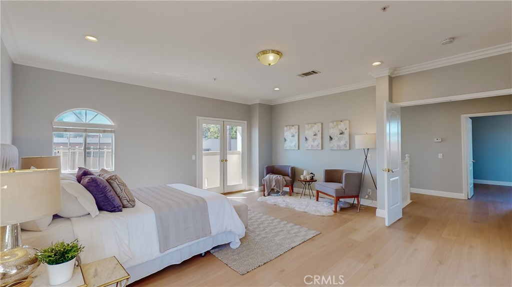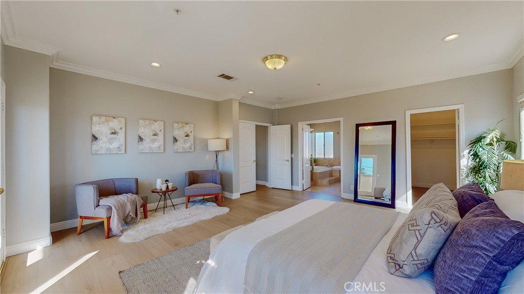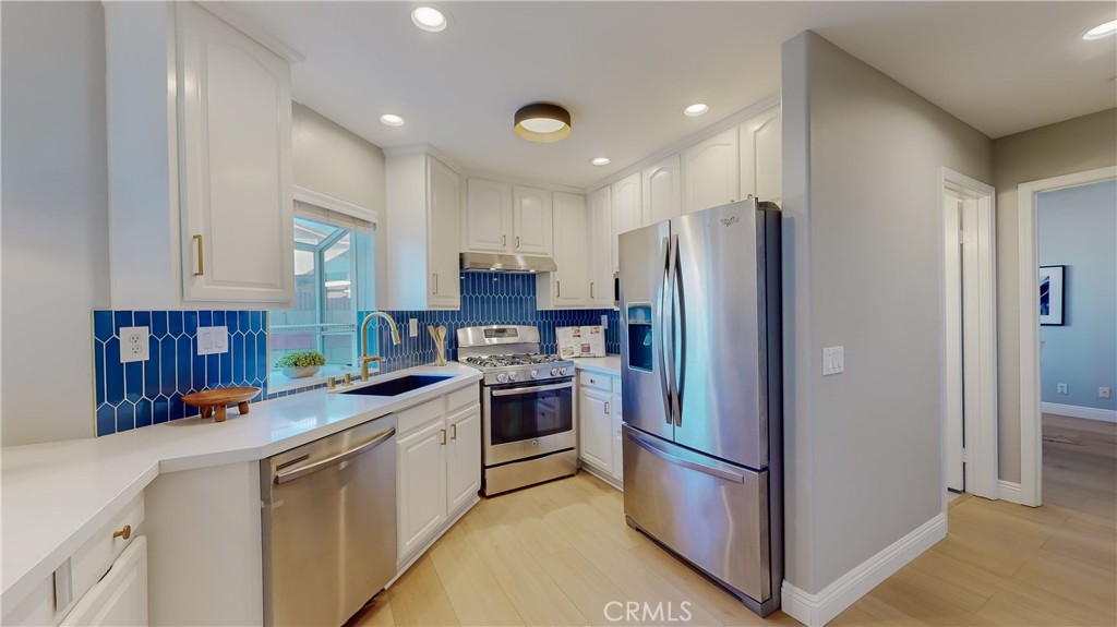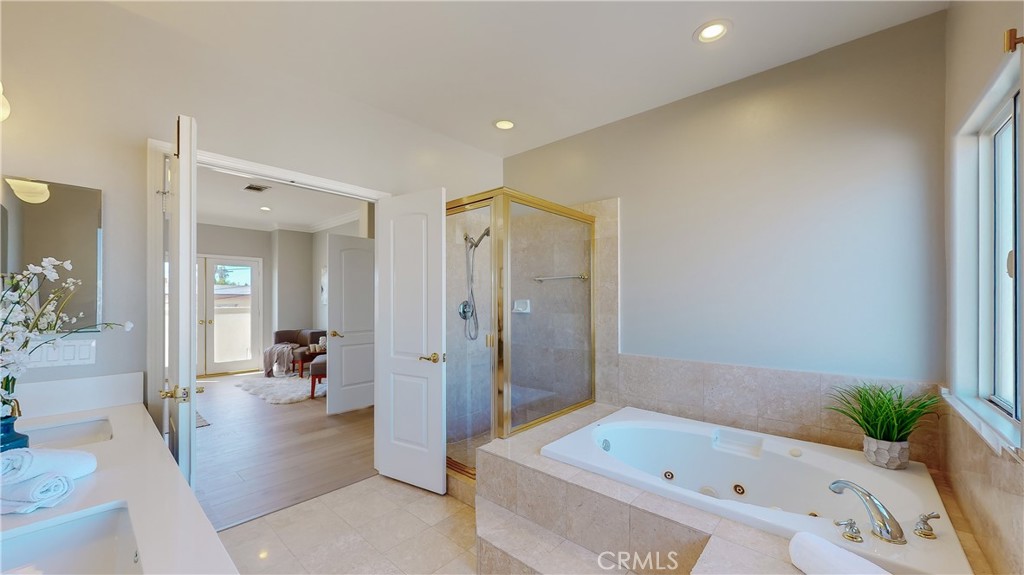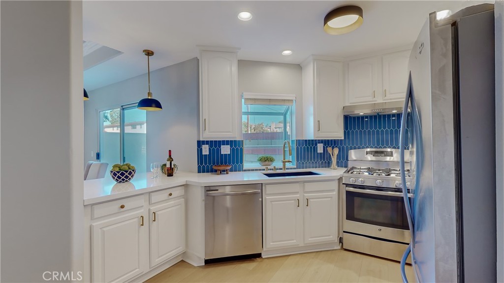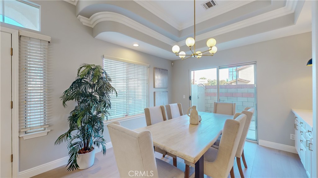 FRONT UNIT! NO SHARED WALLS! Here’s the opportunity you’ve been waiting for. Available for the first time in 20 years, this stylishly updated home boasts soaring tray ceilings along with 4 spacious bedrooms & baths. Step into a world of elegance and modern living as you notice the new flooring, chic lighting fixtures, and elegant gold accents throughout. The open and well-thought-out floor plan features a generous living room with a lovely travertine fireplace and is just the right size for large gatherings where cherished memories are made. Stunning designer backsplash magnificently pops against the bright white cabinets and quartz countertops in the Chef’s kitchen that includes stainless steel appliances. Adjacent to the kitchen you’ll find a completely remodeled bathroom and a bedroom that could serve as a study where creativity meets brilliance. The large 2 car garage provides plenty of storage and has direct access into the home. A third dedicated parking space is adjacent to the home for your convenience. Up a flight of stairs, you’ll find not 1, not 2, but 3 suites each with its own updated bathroom. The enormous primary suite is fit for royalty and has a vast walk-in closet ready to be customized for the fashionista in you. If outdoor space is what you’re after, look no further. One could search for years and not find a home of this quality, functionality, and with this much yard space in this price point. Conveniently located to freeways and within walking distance to dining, shopping, and highly acclaimed Mark Keppel High School. Don’t blink, or it’ll be gone!