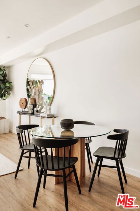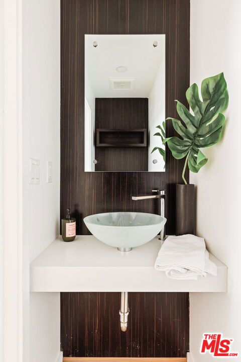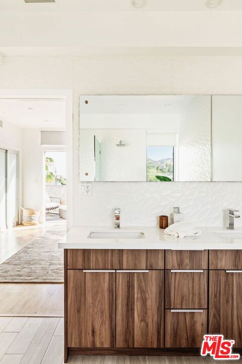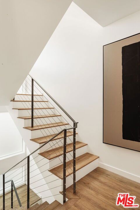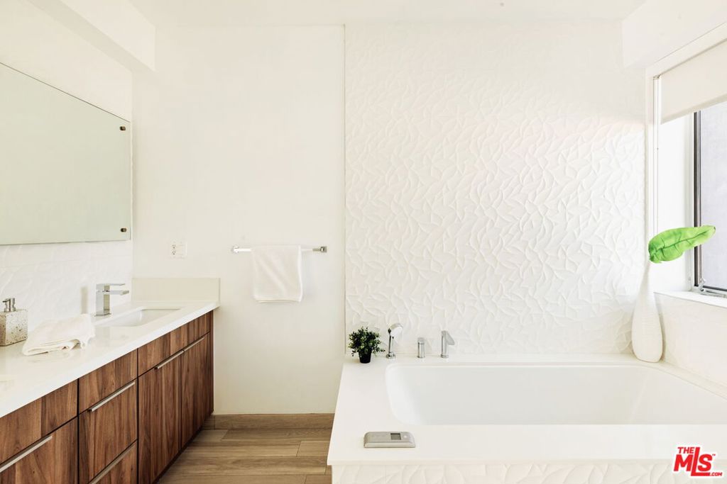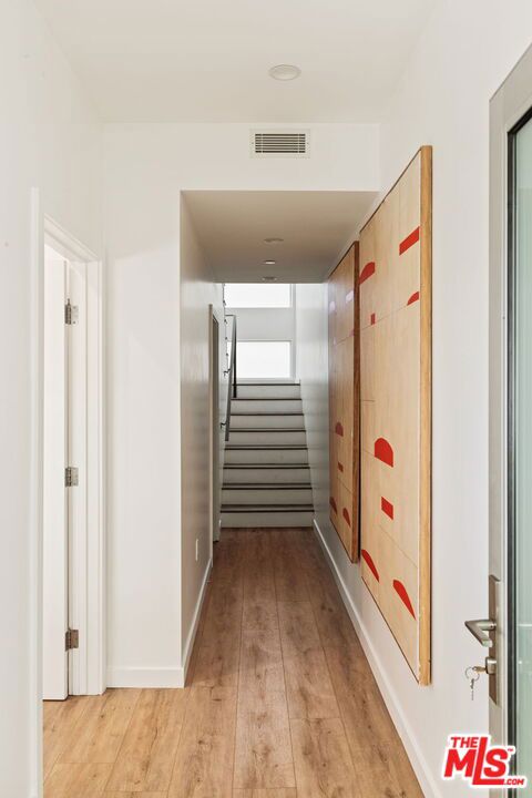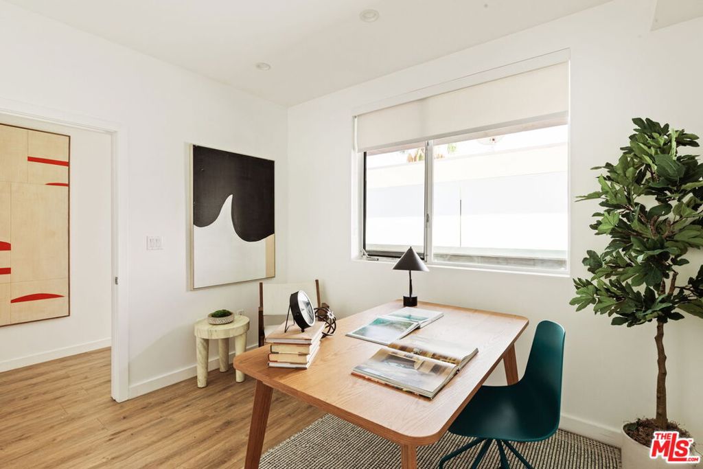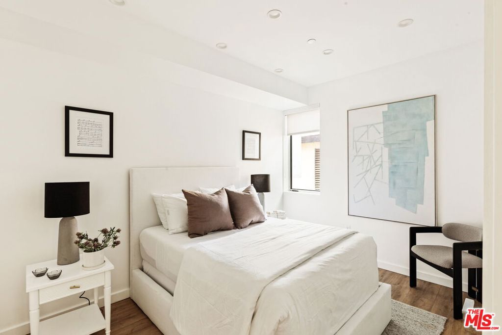 Surrounded by the best that West Hollywood has to offer between Melrose Ave and Santa Monica Blvd sits this beautiful modern townhouse. Through the front door, a long hallway leads past two guest bedrooms with a jack and jill bathroom to a staircase. With an abundance of natural light, the second level boasts a large open living space featuring a great room with city views, a gourmet kitchen with high end appliances, built-ins, a breakfast bar and dining area. On the third level you will find the primary bedroom showcasing custom closets and a private balcony with expansive city views. The primary bathroom includes a standing shower, bath tub, and dual sink vanity. Revel in panoramic views of the Hollywood Hills and Downtown from the private rooftop. For ultimate convenience, the unit includes laundry, two assigned tandem parking spaces, a bike rack, and additional storage.