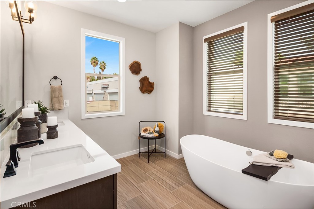 Never lived-in former model home with over $80,000 in options and upgrades. 4 beds (one downstairs, 3 upstairs), 4 bath Spanish Colonial townhome with loft in “Las Colinas”. The open-concept floor plan seamlessly connects the living, dining, and kitchen areas, providing an ideal space for entertaining and creating memories with loved ones. High ceilings and large windows allow natural light to flood the space, enhancing the already inviting atmosphere. Gourmet kitchen with Bertazzoni gas range + hood + dishwasher, shaker-style cabinets, and quartz countertops. Whether you're preparing a quick meal or hosting a dinner party, this kitchen will inspire your culinary creativity. Large primary suite with luxurious walk-in closet, ensuite bathroom with oversized shower, full height, hand-laid ceramic tile surrounds, and free-standing soaking tub. Enjoy Walnut’s 30 miles of hiking trails, outdoor concerts, art centers, and year-round festivals. Minutes from local schools, Mt San Antonio College and California Poly Pomona, plus the 10, 60, 605, and 57 freeways for easy commuting to Los Angeles, Orange County, and beyond.