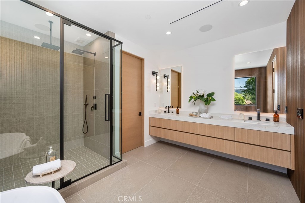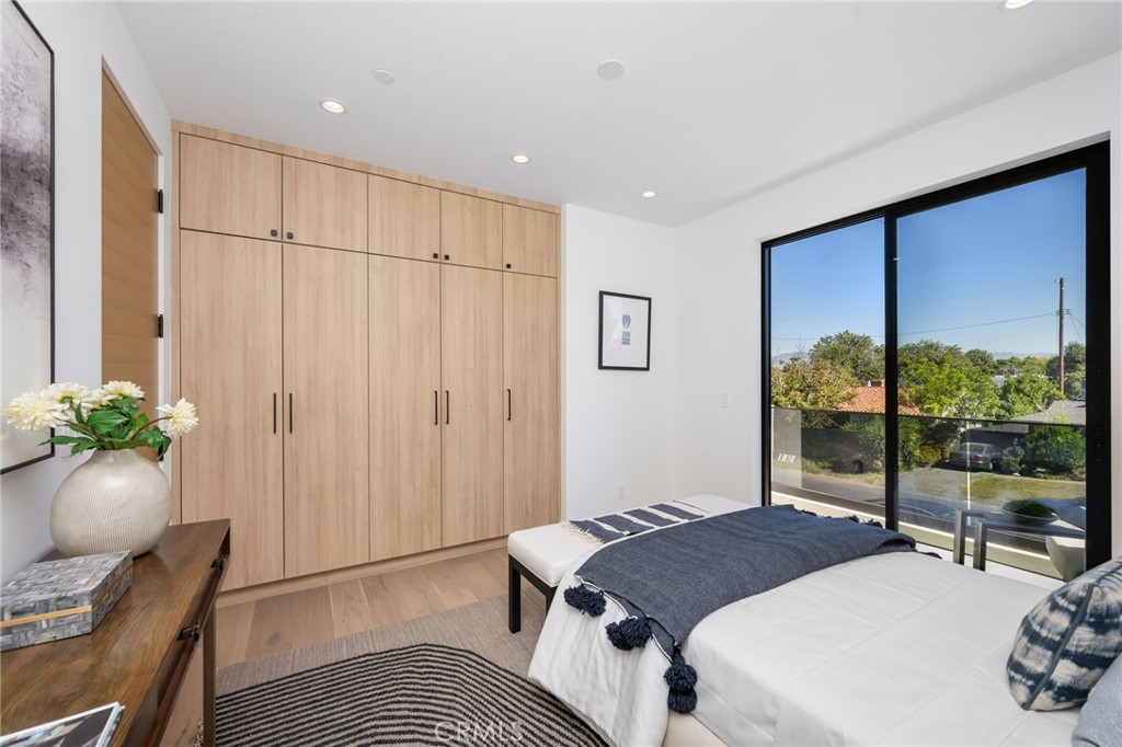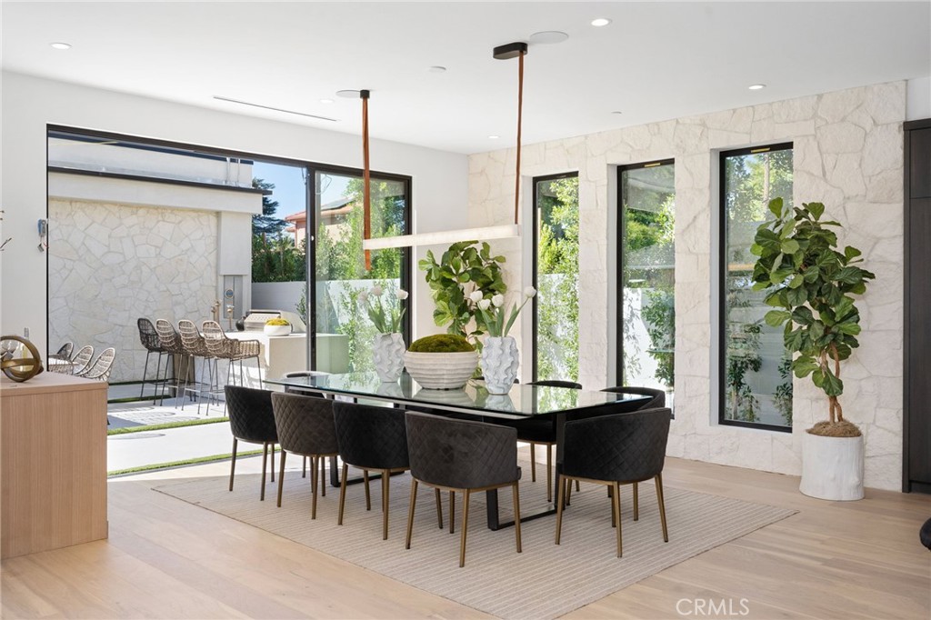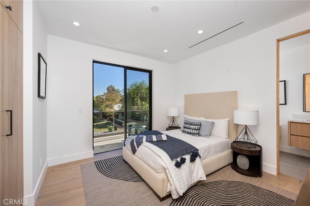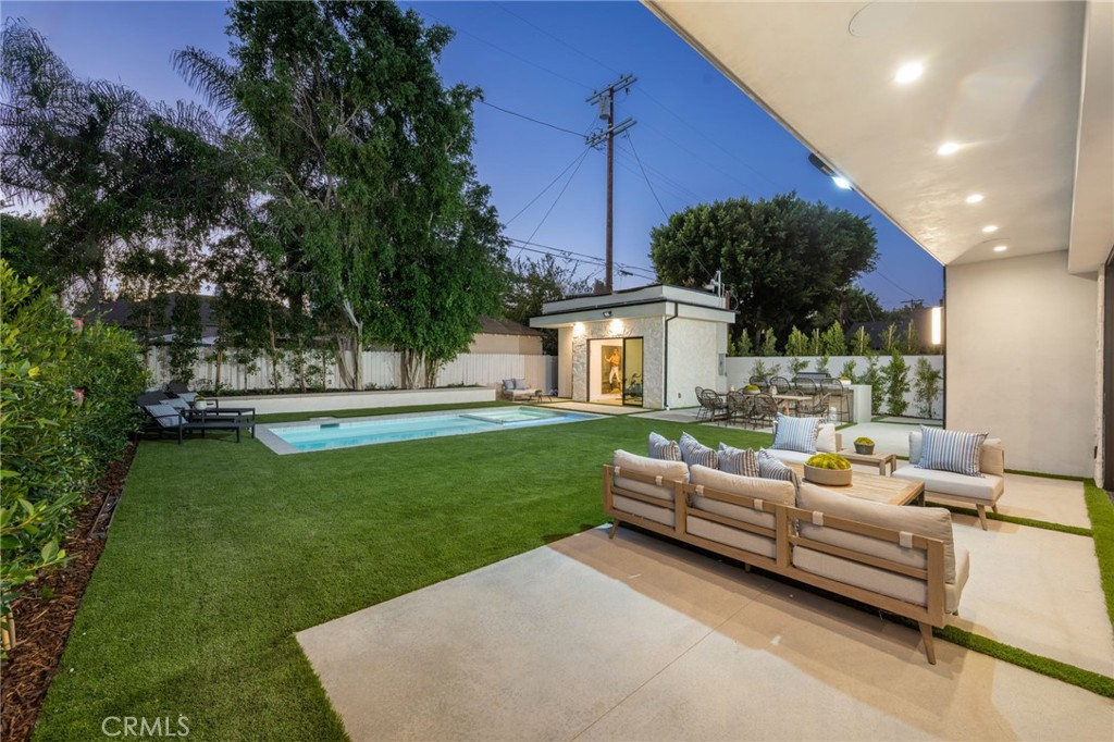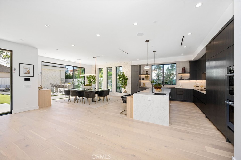 Masterfully Designed Contemporary New Construction estate perfectly located within a terrific Sherman Oaks location, just minutes from Ventura Blvd and the Valley's best shops/restaurants. This Luxurious smart home elegantly incorporates unrivaled craftsmanship within the bold modern design. Spanning across over 4,000 sqft of luxurious living space and displaying an open floor plan with an abundance of natural light throughout. Sleek chefs kitchen equipped with top-of-the line appliances, large island with nook seating and custom cabinetry. Designer primary bedroom with fireplace, large balcony and large walk-in closet space. Indulging master bathroom boasts a relaxing soaking tub, double vanities and walk-in shower. Floor to ceiling glass pocket doors lead to the oasis like backyard featuring a patio for outdoor dining, BBQ with bar seating, pool house with shower & bath, sparkling pool/spa and a large grassy area. Additional amenities include security system with cameras/intercom, solar system, EV charging port and surround sound system throughout.
