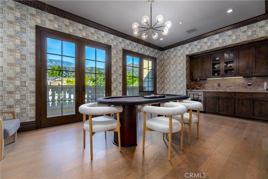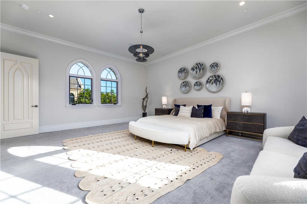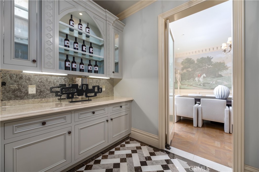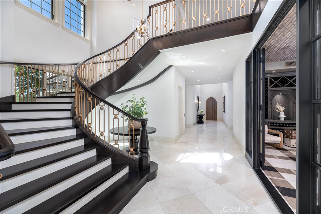 Wet Bar, Built-in Features, Balcony, Ceiling Fan(s), Central Vacuum, High Ceilings, Multiple Staircases, Pantry, Recessed Lighting, Two Story Ceilings, Bar, Bedroom on Main Level, Main Level Primary, Walk-In Pantry, Wine Cellar