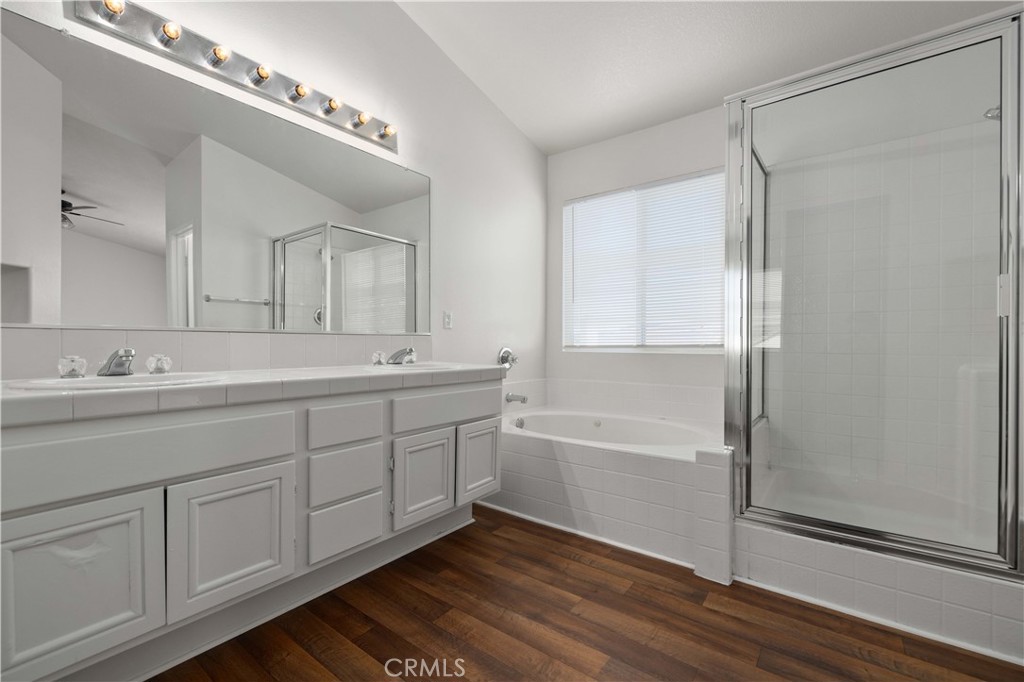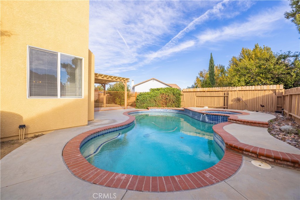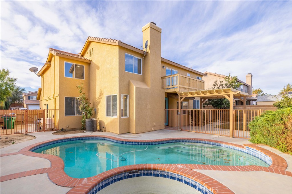 Be welcomed to this absolute GEM pool home in Palmdale. Property is turn key ready. Enter into bliss as light radiates through multitudes of windows illuminating the fresh carpet and clean flooring throughout. Find the spacious family room with a large dinning area. Next enter the bright kitchen with freshly painted cabinets with endless storage. You have direct access to the backyard from kitchen. Step into the cozy living room adorned with a beautiful fireplace. You also can't miss the 2 downstairs bedrooms, perfect for guests or the in laws. Make your way upstairs and be relaxed in the primary bedroom with ceiling/fan light combo, large ensuite complemented by a double sink vanity & walk-in closet, standing shower & soaking tub. Also enjoy the walk out balcony from bedroom with a sliding glass door. Discover 4 additional large bedrooms with ceiling fan/light combos and spacious closets. The guest hall bathroom is equipped with a shower/tub combo & a double sink vanity. Venture outside to the sizable backyard & find the covered patio with gated POOL and SPA. This home has it all.
