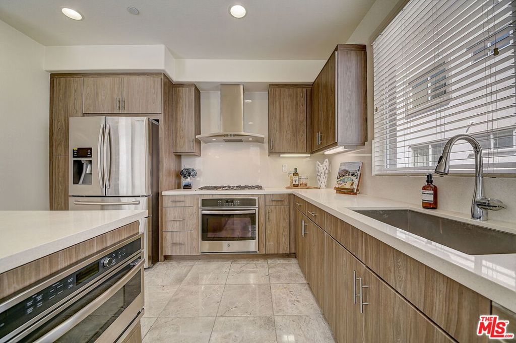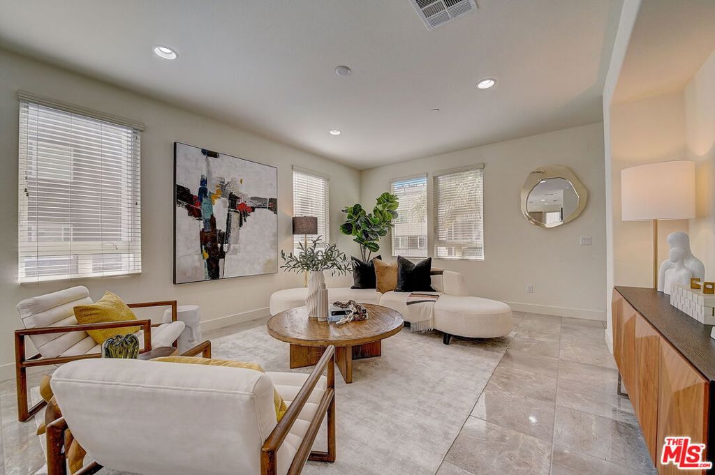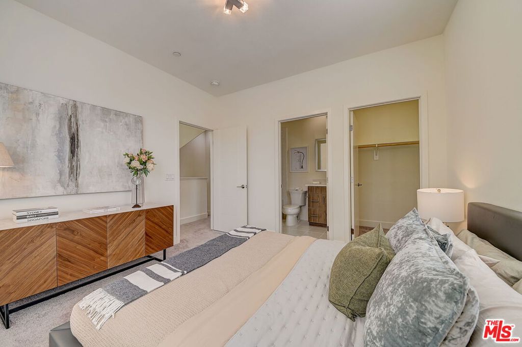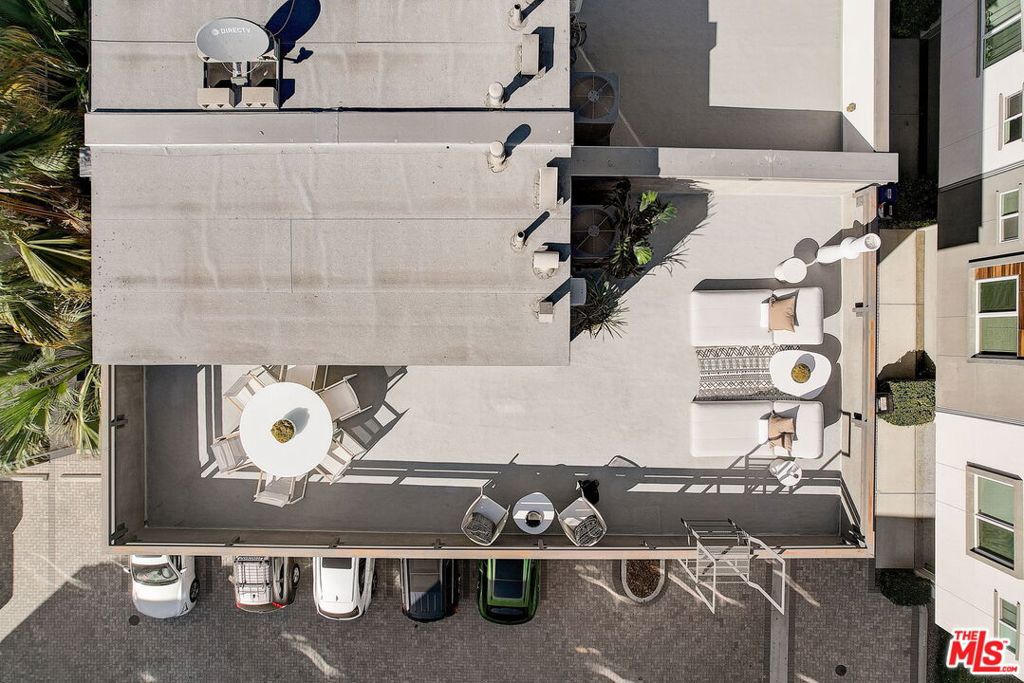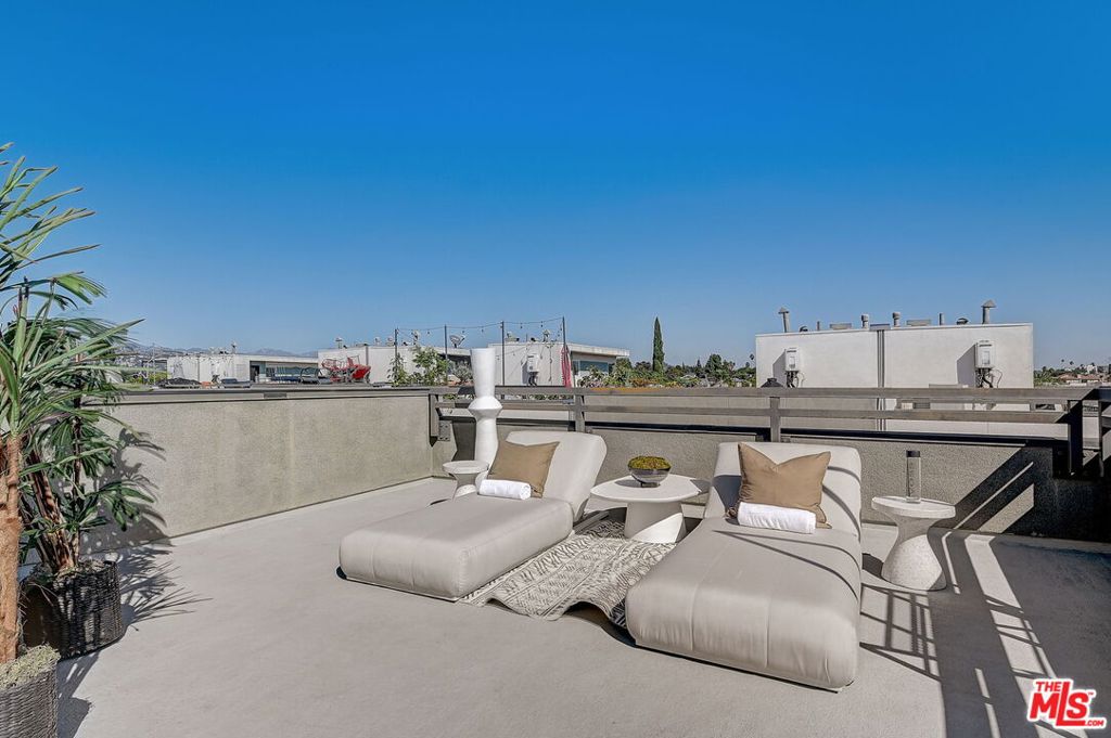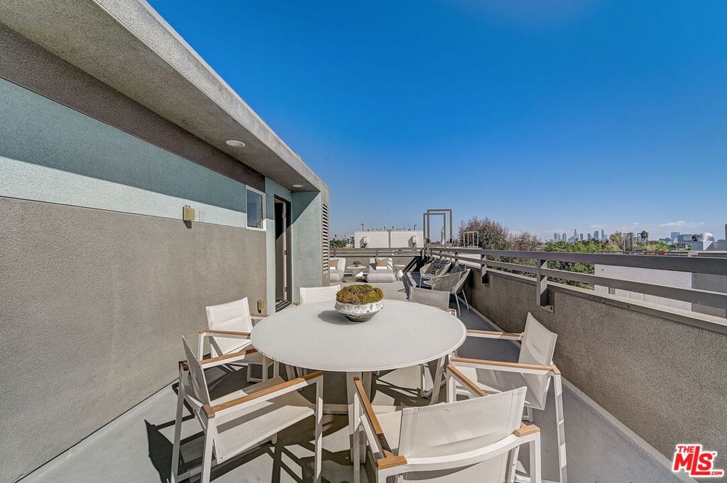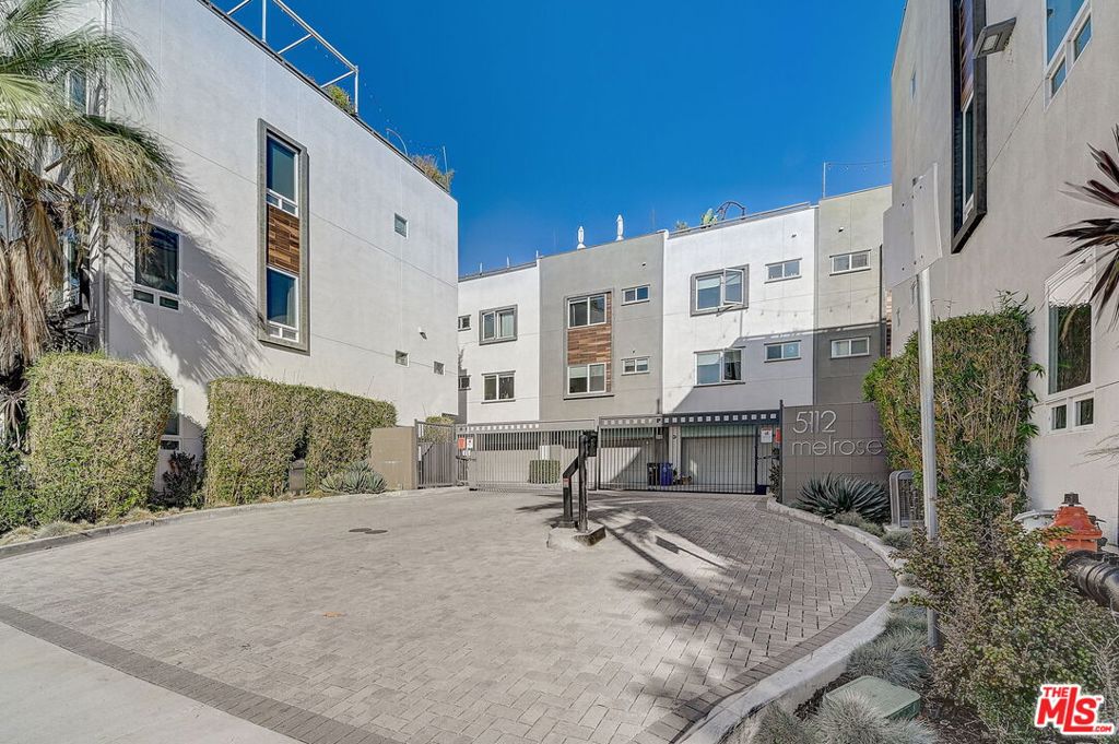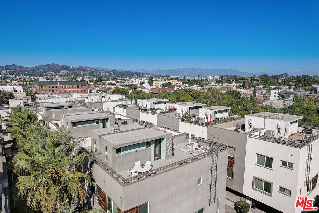 Meticulously maintained END-UNIT single family home with three exposures, a private roof deck and NO SHARED WALLS! At the intersection of Hancock Park, Larchmont, East Hollywood & Melrose Hill, just across the street for the trendy Edmon Hotel & blocks from Paramount Studios. Tree-covered front entry leads you past the 3rd bedroom / office suite and upstairs to the full-floor great room with kitchen, dining and living areas. This spacious floor is sun-filled throughout with its East, West & primarily South exposures. The oversized kitchen is perfect for a chef or entertainer (or both) and features quartz counters, an enormous island and top of the line appliances with tons of storage. A modern chandelier helps define the large dining area, while the living room boasts an alcove for TV or to showcase art. The third floor showcases two more large bedroom suites, including the primary suite with spa-like shower, and has a perfectly placed laundry room off the hallway. Up again to the private rooftop deck you'll see a spacious outdoor living area with panoramic views of the Hollywood Sign, Griffith Observatory, and breath-taking straight-on views of DTLA. This home is located in a highly desirable secure and quiet gated community just off Gramercy Place. Low monthly HOA fee covers front entry gate & grounds maintenance, including the complex's on-site dog park. Association has strong reserves.
