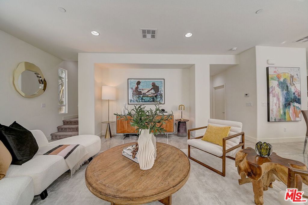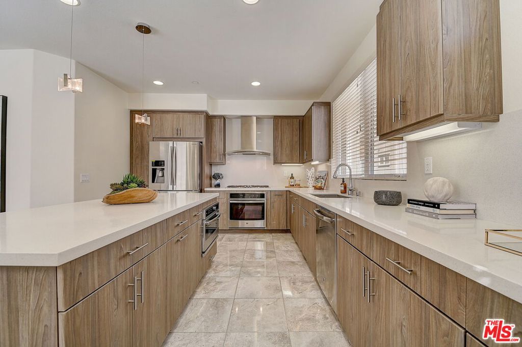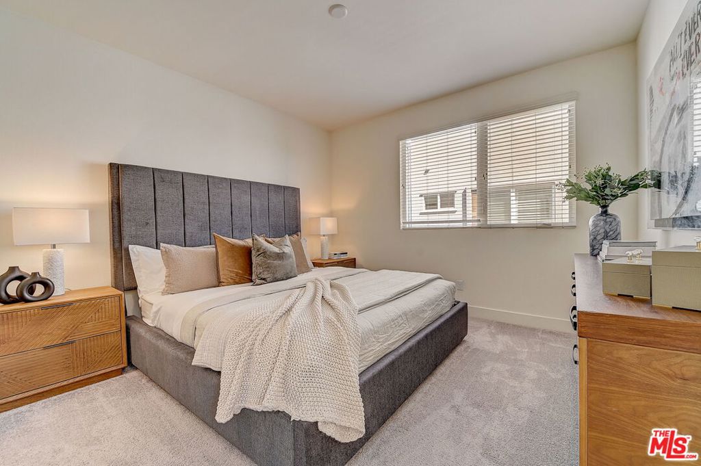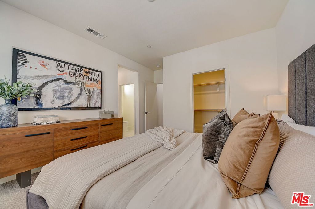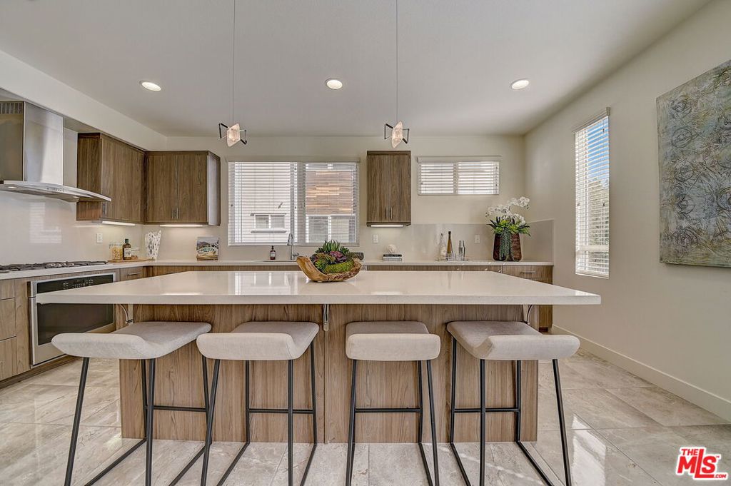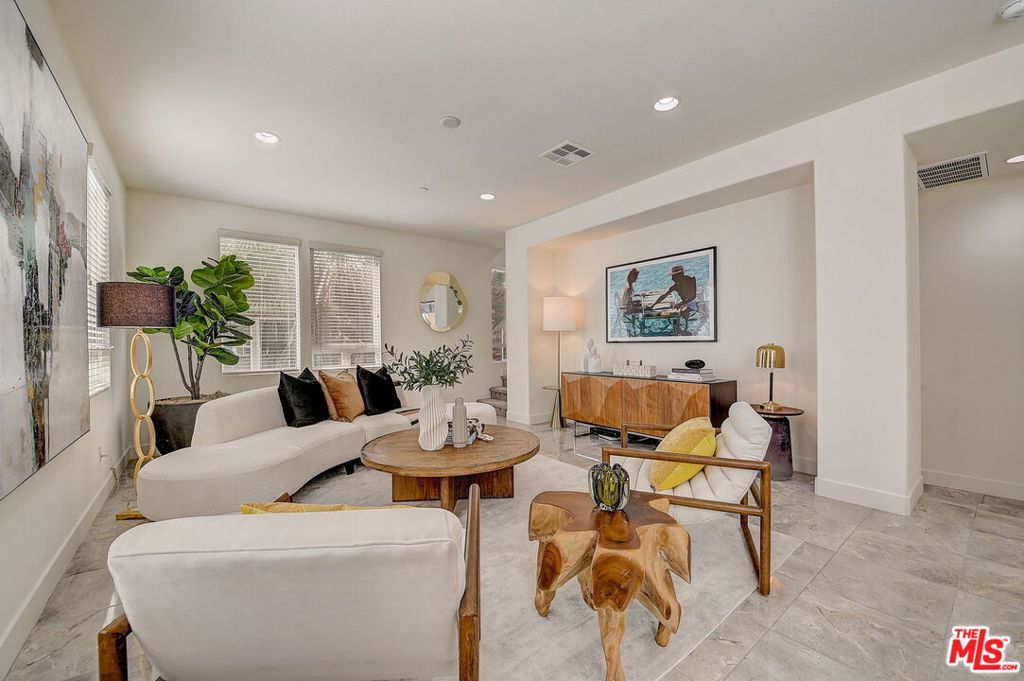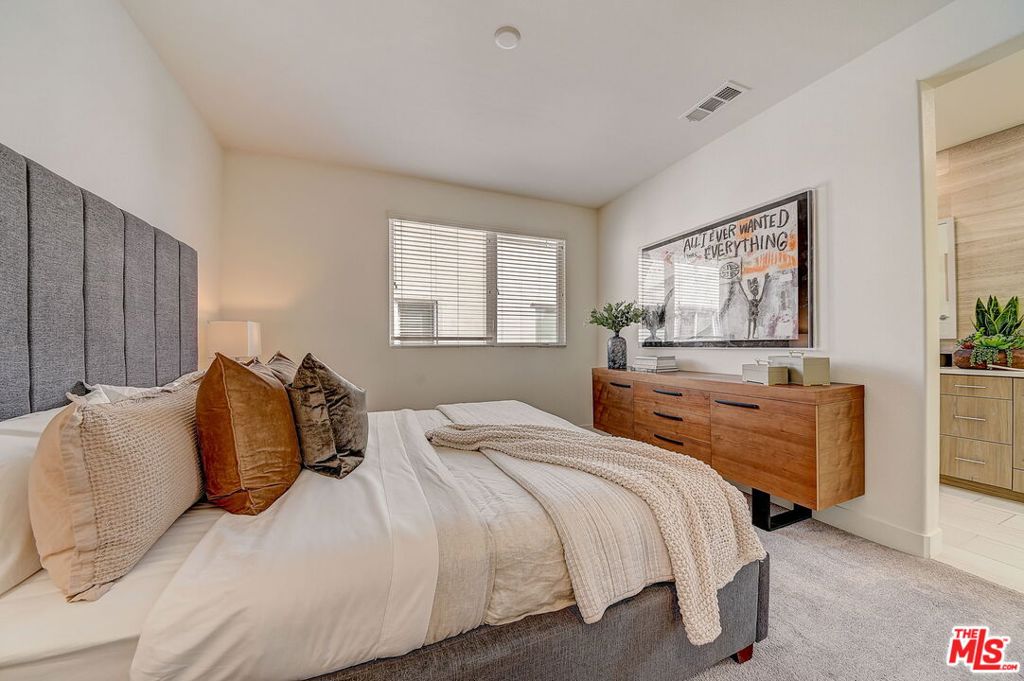 Meticulously maintained END-UNIT single family home with three exposures, a private roof deck and NO SHARED WALLS! At the intersection of Hancock Park, Larchmont, East Hollywood & Melrose Hill, just across the street for the trendy Edmon Hotel & blocks from Paramount Studios. Tree-covered front entry leads you past the 3rd bedroom / office suite and upstairs to the full-floor great room with kitchen, dining and living areas. This spacious floor is sun-filled throughout with its East, West & primarily South exposures. The oversized kitchen is perfect for a chef or entertainer (or both) and features quartz counters, an enormous island and top of the line appliances with tons of storage. A modern chandelier helps define the large dining area, while the living room boasts an alcove for TV or to showcase art. The third floor showcases two more large bedroom suites, including the primary suite with spa-like shower, and has a perfectly placed laundry room off the hallway. Up again to the private rooftop deck you'll see a spacious outdoor living area with panoramic views of the Hollywood Sign, Griffith Observatory, and breath-taking straight-on views of DTLA. This home is located in a highly desirable secure and quiet gated community just off Gramercy Place. Low monthly HOA fee covers front entry gate & grounds maintenance, including the complex's on-site dog park. Association has strong reserves.
