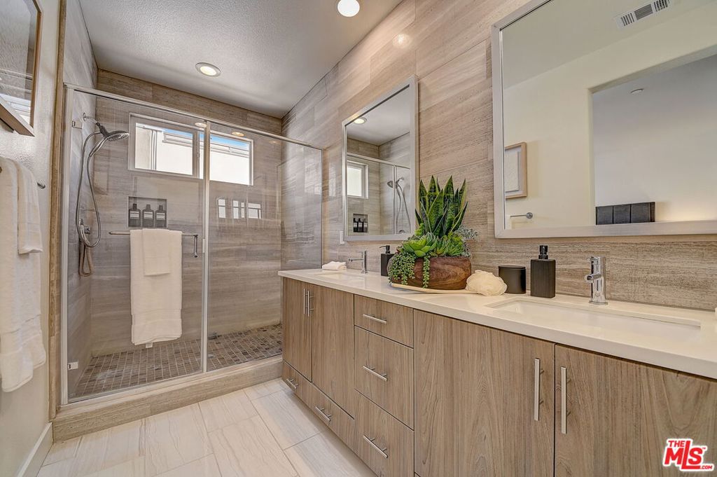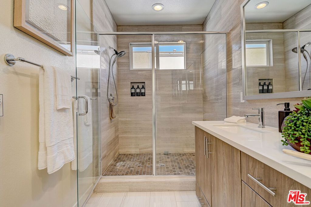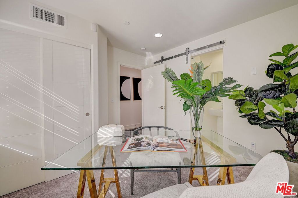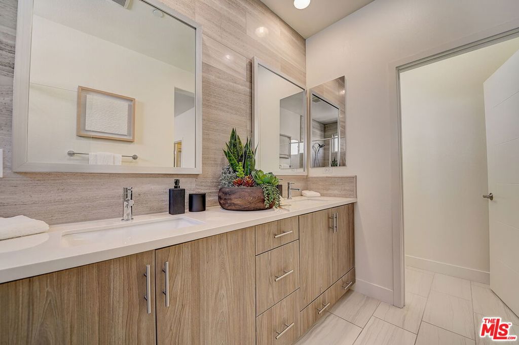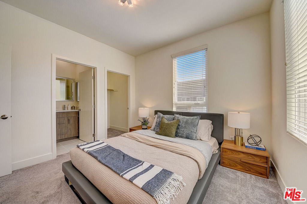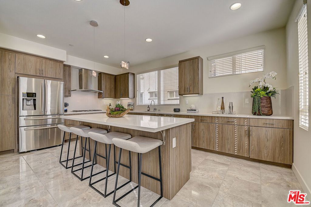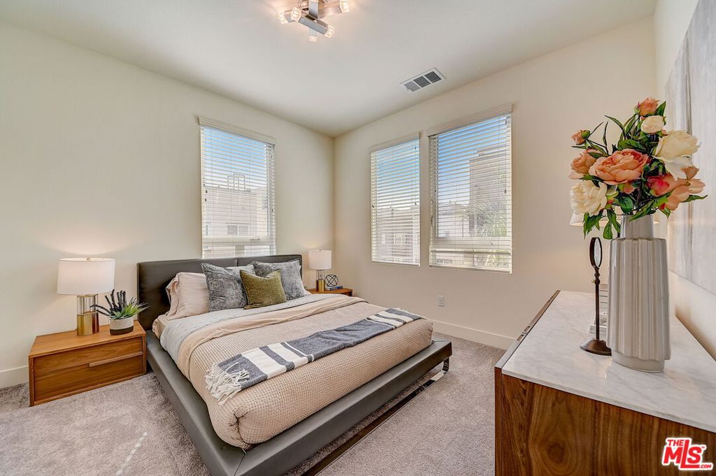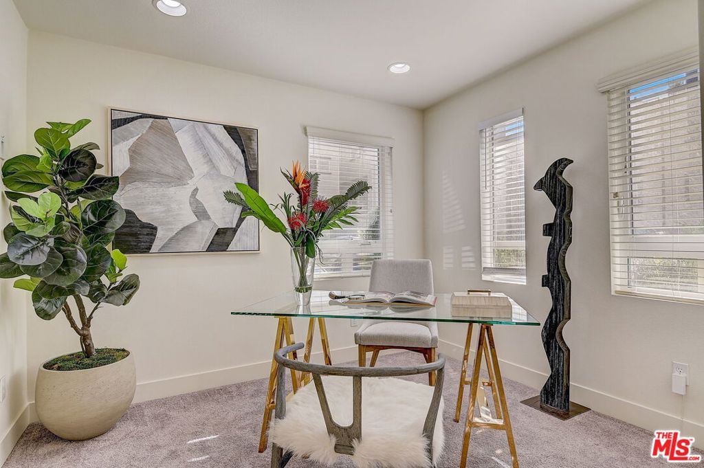 Meticulously maintained END-UNIT single family home with three exposures, a private roof deck and NO SHARED WALLS! At the intersection of Hancock Park, Larchmont, East Hollywood & Melrose Hill, just across the street for the trendy Edmon Hotel & blocks from Paramount Studios. Tree-covered front entry leads you past the 3rd bedroom / office suite and upstairs to the full-floor great room with kitchen, dining and living areas. This spacious floor is sun-filled throughout with its East, West & primarily South exposures. The oversized kitchen is perfect for a chef or entertainer (or both) and features quartz counters, an enormous island and top of the line appliances with tons of storage. A modern chandelier helps define the large dining area, while the living room boasts an alcove for TV or to showcase art. The third floor showcases two more large bedroom suites, including the primary suite with spa-like shower, and has a perfectly placed laundry room off the hallway. Up again to the private rooftop deck you'll see a spacious outdoor living area with panoramic views of the Hollywood Sign, Griffith Observatory, and breath-taking straight-on views of DTLA. This home is located in a highly desirable secure and quiet gated community just off Gramercy Place. Low monthly HOA fee covers front entry gate & grounds maintenance, including the complex's on-site dog park. Association has strong reserves.