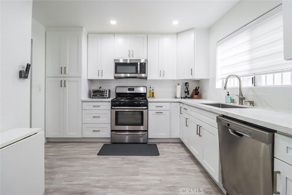 Welcome to 142 Rosemont! This stunning move-in-ready 2-bedroom, 1.5-bathroom townhouse with a private tandem garage that includes direct access to the house. Low Monthly HOA that covers water! Walk through the front gate, and you’ll see a large outdoor patio space with a lemon tree and newly poured 11x16’ concrete slab and pergola to enjoy the outdoors. Step inside with the keyless door lock with doorbell camera, and notice the bright spacious living room with a dining area space. The entire first floor has been updated with new floors in the living room, kitchen and bathrooms. The spacious kitchen has also been renovated with ample cabinet spaces, gas stove top, dishwasher, a large fridge, and quartz countertops with a large sink. As you take the stairs, you’ll see that the second floor is all hardwood floors. Both rooms are large and spacious with beautiful vaulted ceilings. There is ample closet space in both rooms as well as the bathroom. The bottom floor is the private tandem 2-car garage with a closet for storage, extra ample space for anything, and your washer and dryer hookups. Excellent central location in LA. Only 10 minutes to downtown LA and Koreatown. Steps away from historic FillipinoTown, and only minutes away from the 101 freeway! Don’t miss this opportunity in a prime location!